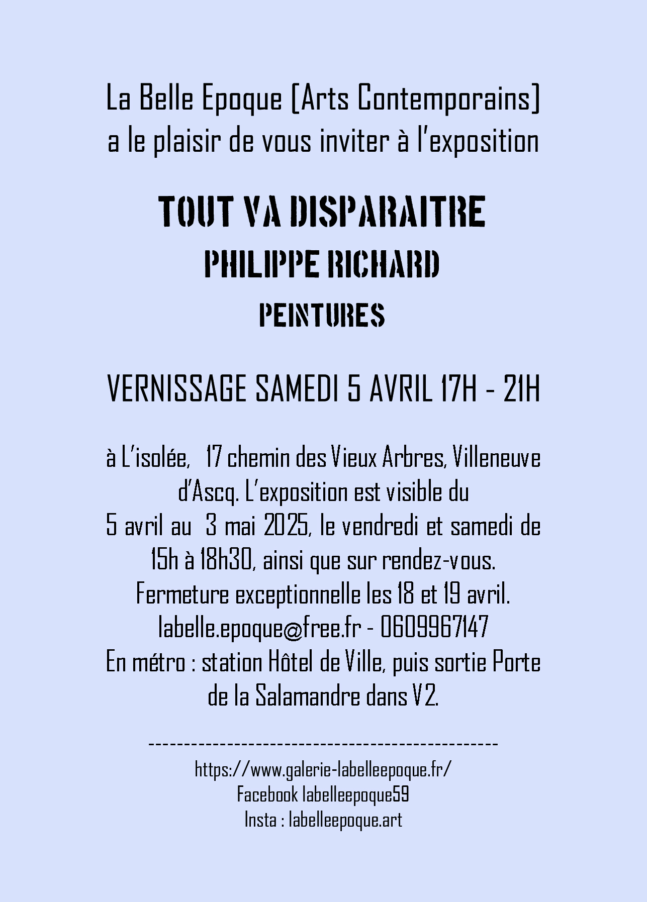 Exposition : du 16 au 18 mai 2025, de 15h à 19h